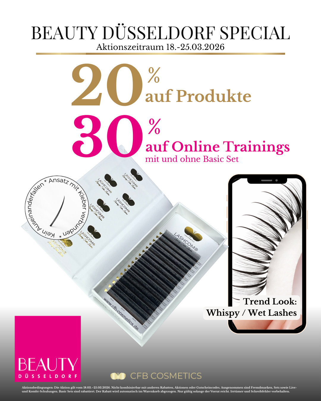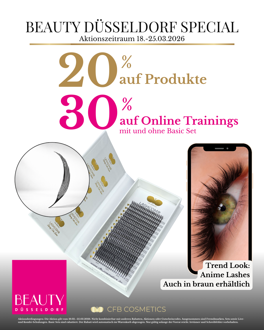 Die Beauty Düsseldorf gehört zu den wichtigsten Branchen-Events für Beauty Professionals, Lash Artists und Kosmetikstudios. Mit unserem Beauty Düsseldorf Special bietet CFB Cosmetics® exklusive Angebote auf professionelle Beauty Produkte, Studio Ausstattung und Online Trainings für Wimpernverlängerung, Lash Lifting, Brow Styling und mehr.