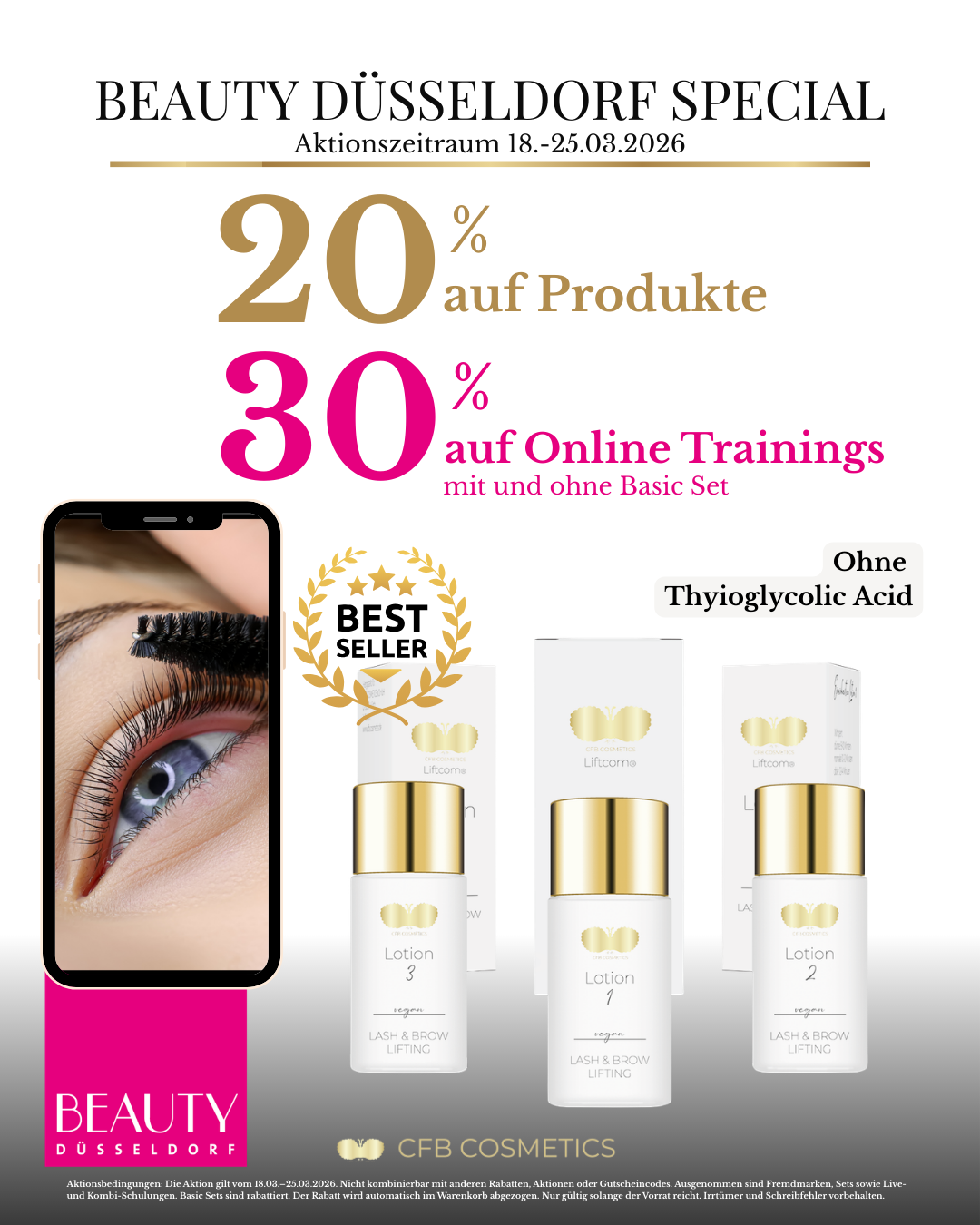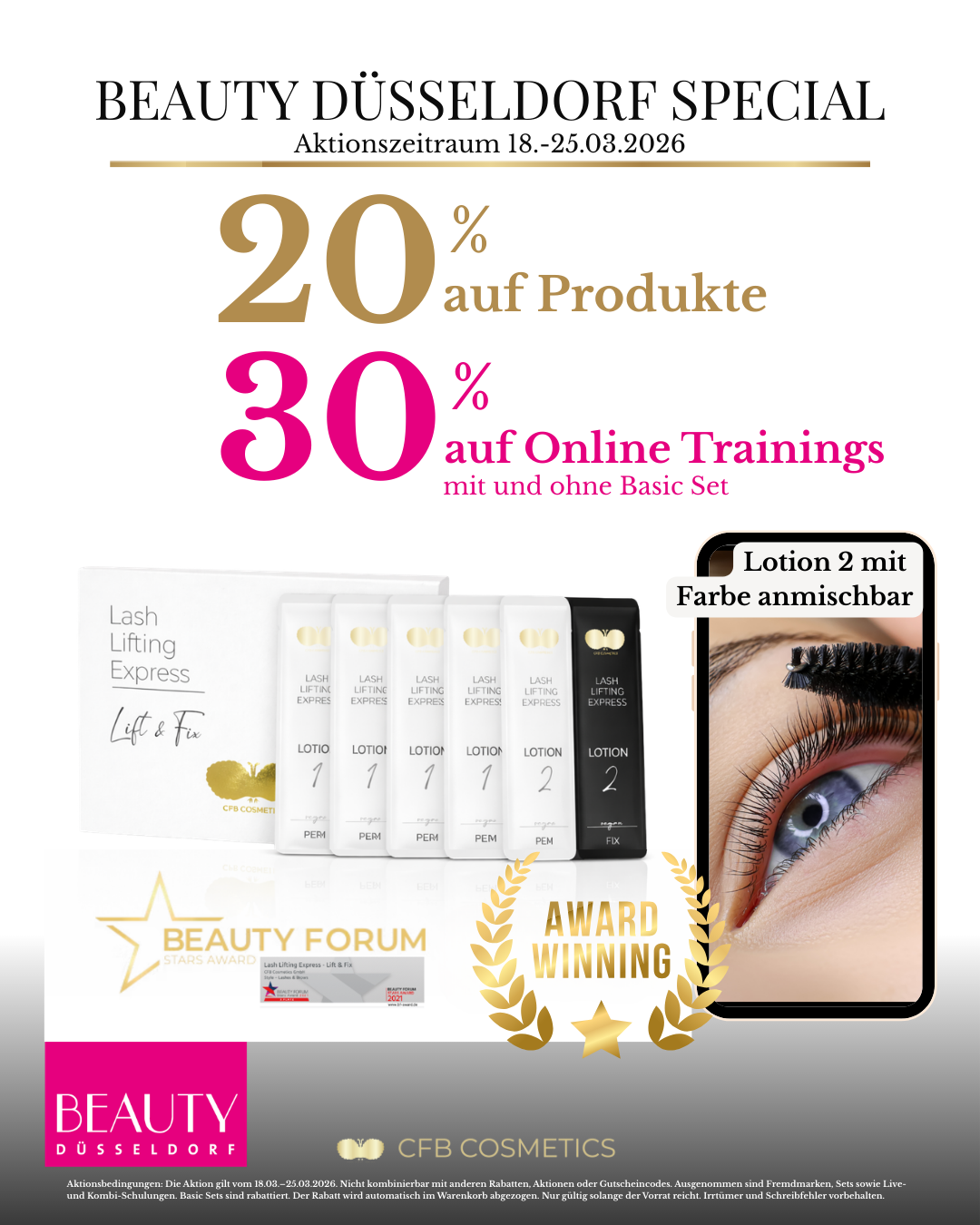 Zur Beauty Düsseldorf feiern wir bei CFB Cosmetics® eine exklusive Aktionswoche für Beauty Professionals. Sichere Dir starke Rabatte auf professionelle Produkte für Lash Studios, Brow Artists und Kosmetikstudios.