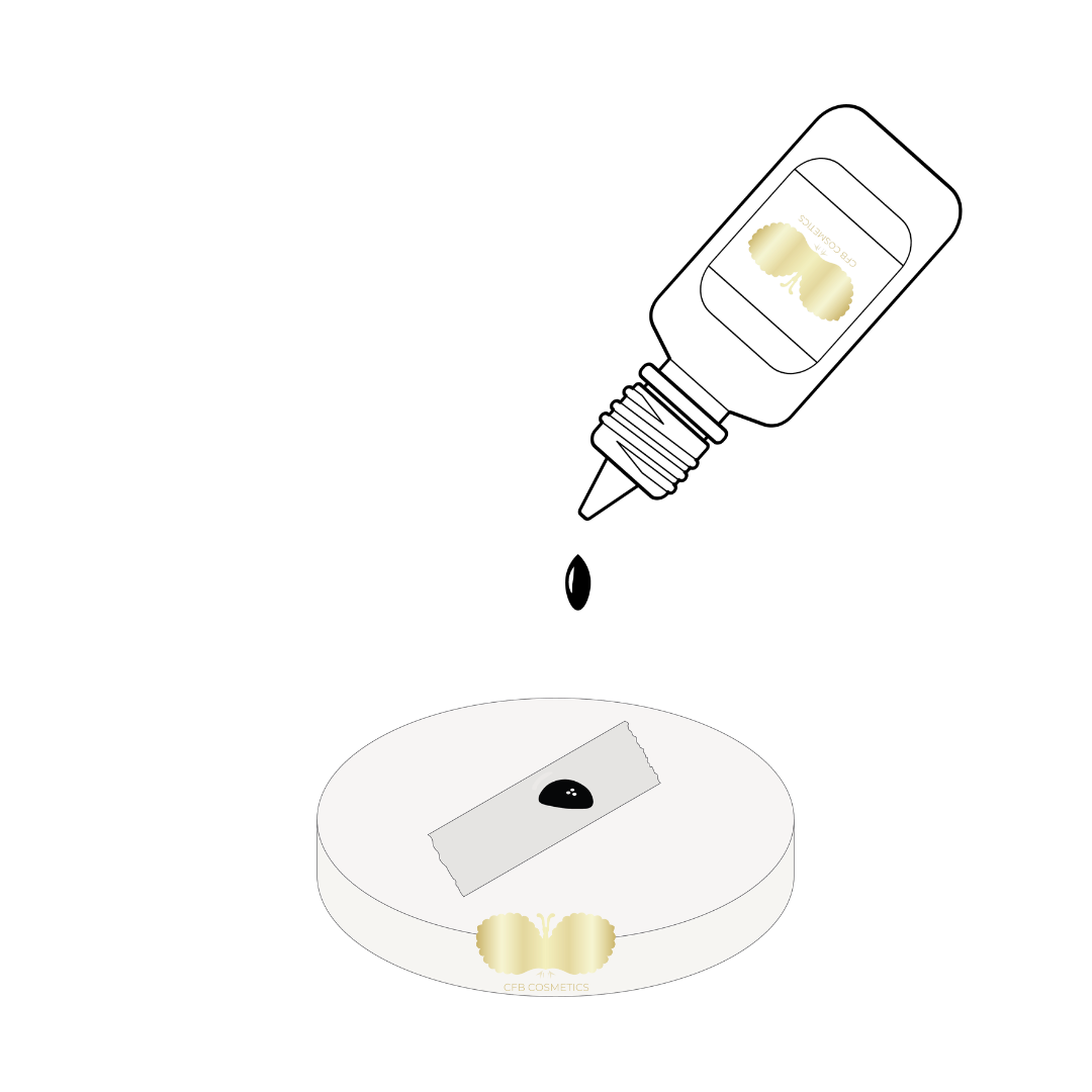 Do clients or you as an eyelash stylist react sensitively to the vapors from the eyelash glue? To bind the vapours produced during the polymerization of the eyelash glue more quickly and reduce them from the ambient air, fix a damp cotton pad underneath the eye pad with the tapes. This trick can help to minimize potential sensitivities to the adhesive fumes and create a more comfortable working environment.