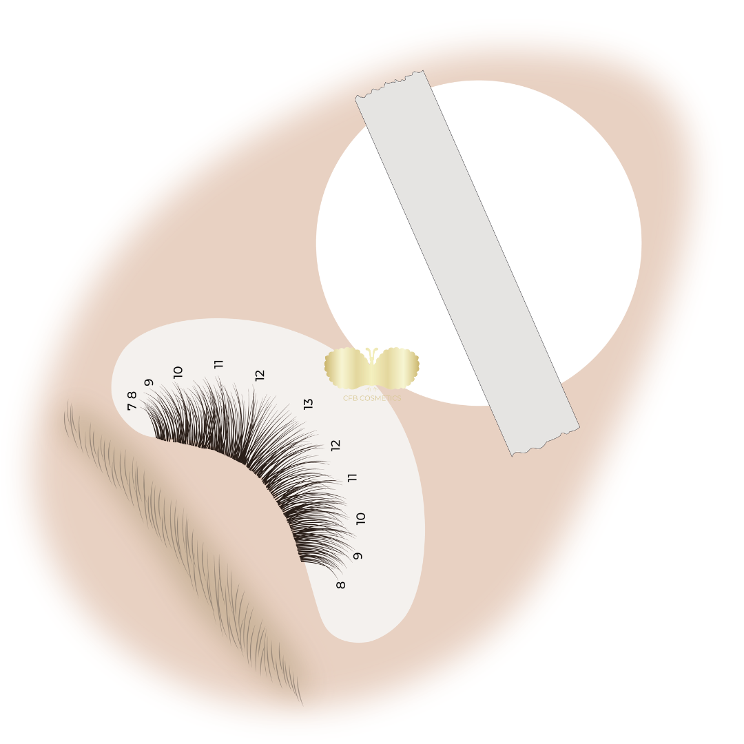 Tapes can also be used to better reach the very short and fine lashes in the inner and outer corners. Correct application of the tapes makes these fine lashes visible and separates them. The illustrations show you how to do this.