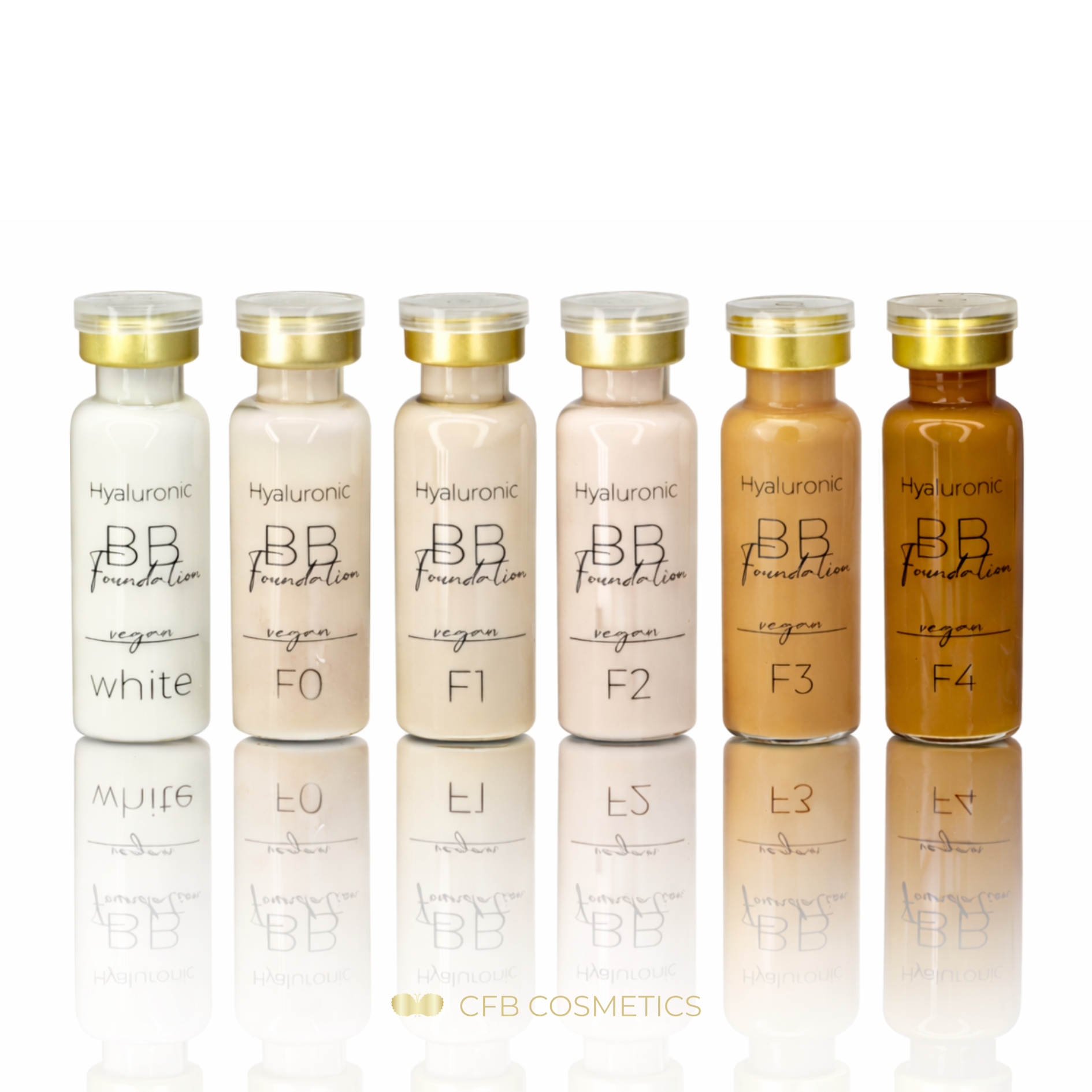 Discover the revolutionary formula of our foundations, which already contain hyaluronic acid and provide your skin with comprehensive careWith the purchase of this set you will receive 5 x foundations + one for free!Features:Our foundations are enriched with hyaluronic acid, a powerful ingredient that intensely moisturises the skin and makes it look plumper and more radiant. Experience the difference of a foundation that not only provides perfect coverage, but also nourishes and moisturises your skin.Each bottle is sterile packed to preserve the freshness and quality of the ingredients.Choose from a wide range of colours to find your perfect skin tone - thanks to the ability to mix the colours, you can create your own individual shadeOur foundations are vegan and cruelty-free, so you can not only take care of your skin, but also have a clear conscience.Buy more than 6 foundations per colour and benefit from a lower price.Available variants:WhiteF0F1F2F3F4Application:Our foundations are suitable for all skin areas where a lighter skin tone is desired. Ideal for covering hyperpigmentation, discolouration, freckles, age spots and much more.Also suitable for the neck, décolleté and other areas. Discover the perfect combination of coverage and care with our foundations that already contain hyaluronic acid.