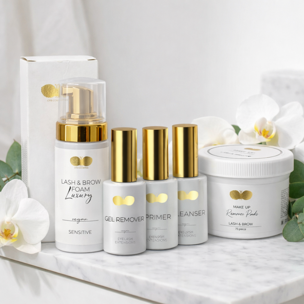 The liquids from CFB Cosmetics® such as Gel Remover, Primer and Cleanser are indispensable products for professional eyelash extensions. Our Gel Remover safely removes eyelash glue, the Primer optimally prepares the eyelashes and the Cleanser ensures thorough cleaning before the treatment. With these high-quality products, eyelash stylists achieve perfect results and long-lasting eyelash extensions.